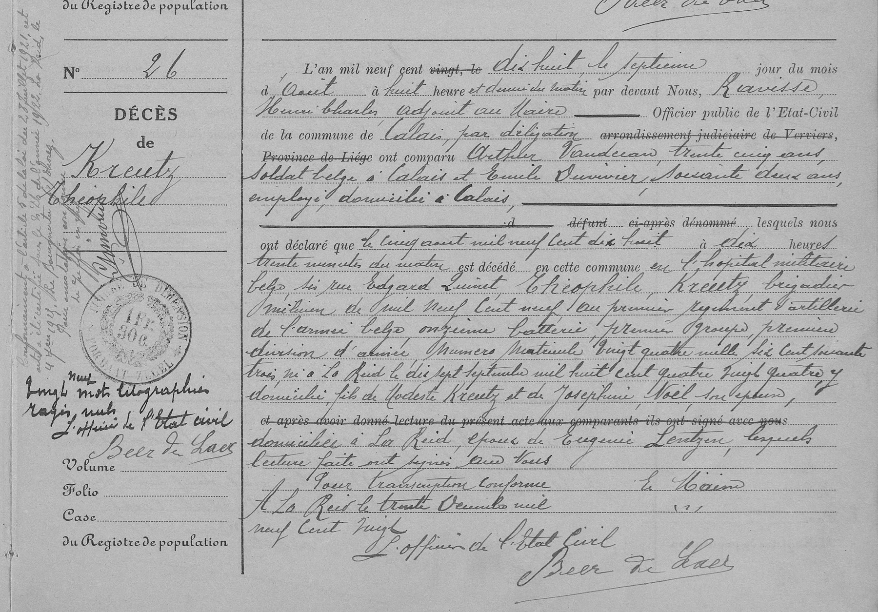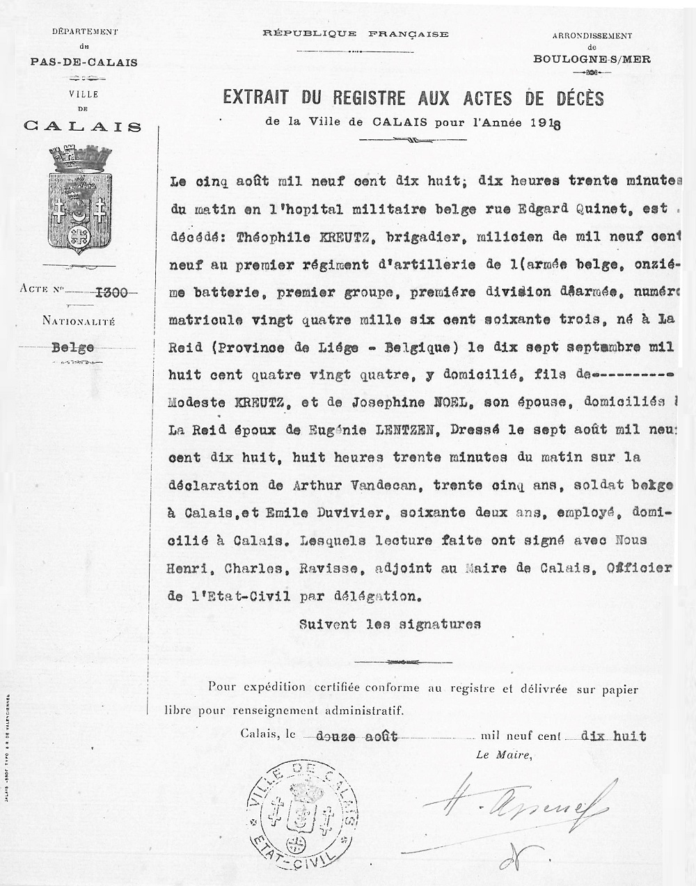 Acte de décès à Calais, Pas-de-Calais, FR (Source [167])