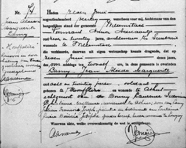Tombe de Jean LAMY au cimetière de Hollandsch Diep à Willemstad, NL, avant la