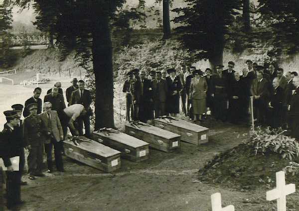 Exhumation, le 21 septembre 1949, des corps des quatre Français