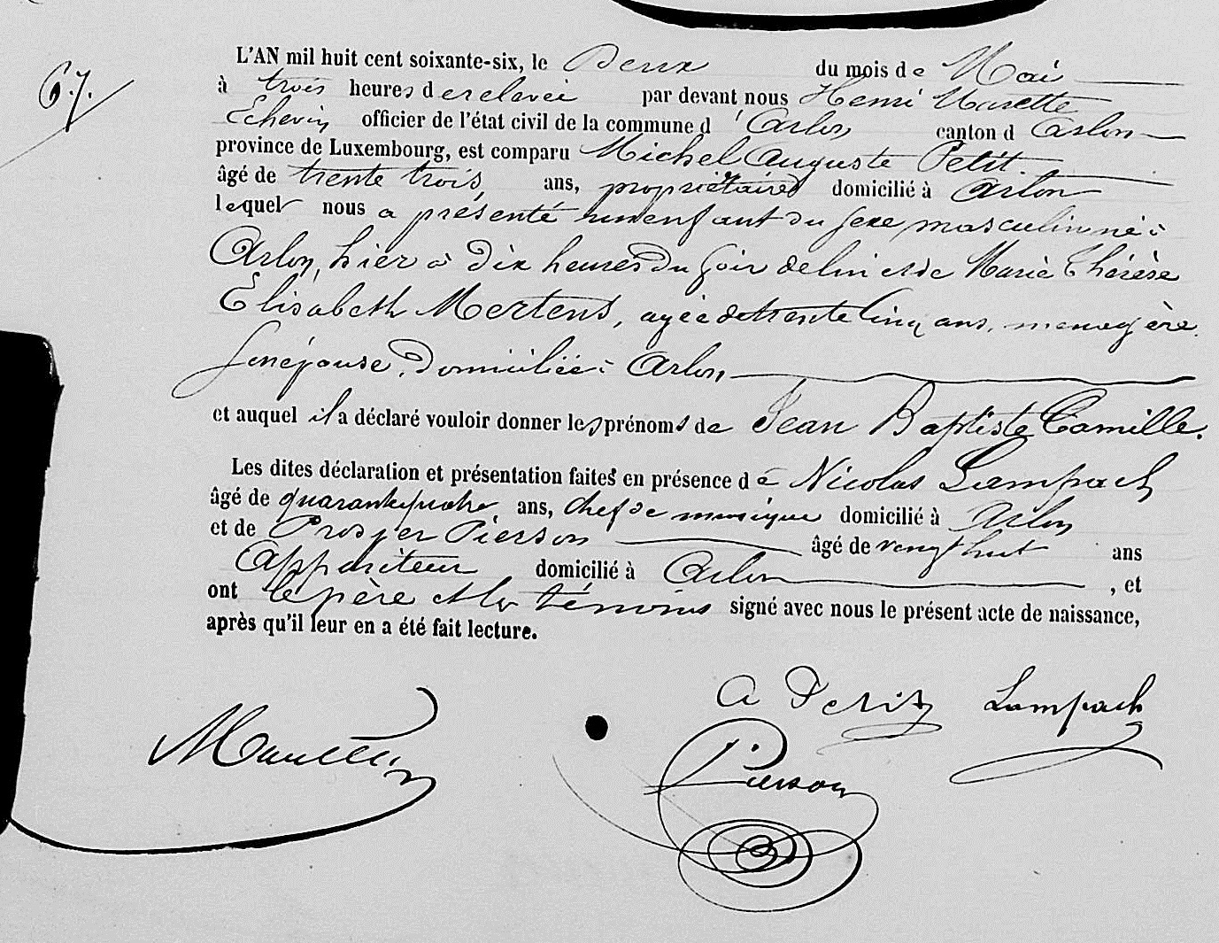 Acte de naissance à Arlon, LU, BE (Source [358])