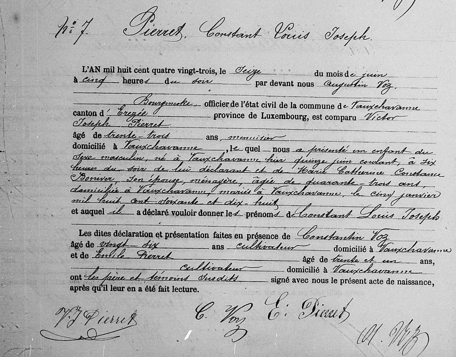 Acte de naissance à Vaux-Chavanne, LU, BE (Source [358])