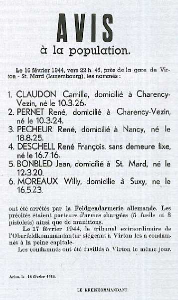 Avis de la Kommandantur allemande annonçant l'exécution de Jean