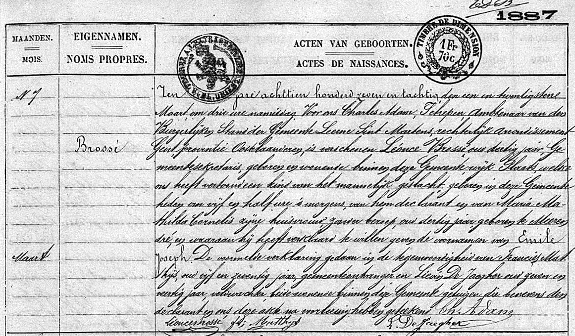 Geboorteakte te Sint-Martens-Leerne, OV, BE (Bron [358])