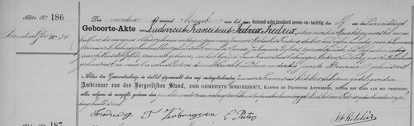 Geboorteakte te Borgerhout, AN, BE, 1887 (Bron [358])