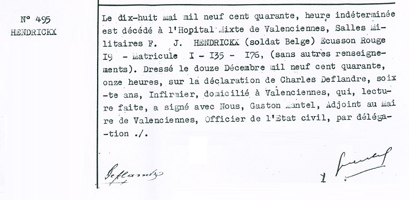 Overlijdensakte te Valenciennes, Nord, FR (Bron: Alain DUBOIS)