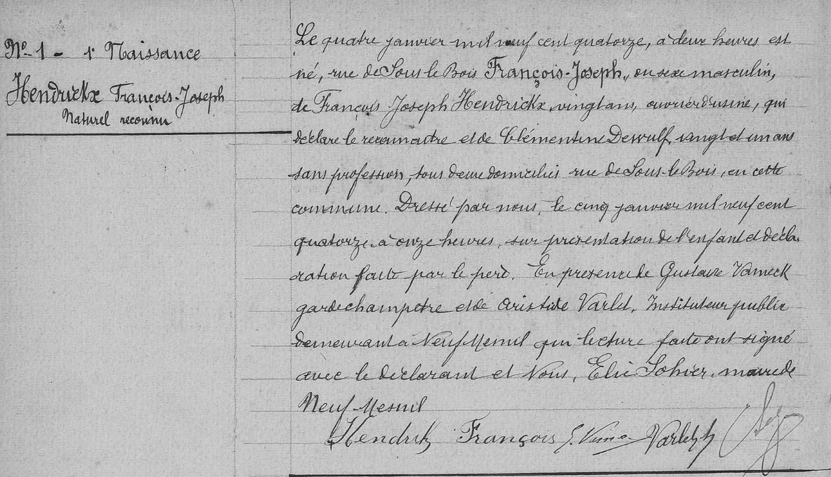 Geboorteakte te Neuf-Mesnil, Nord, FR (Bron: Archives