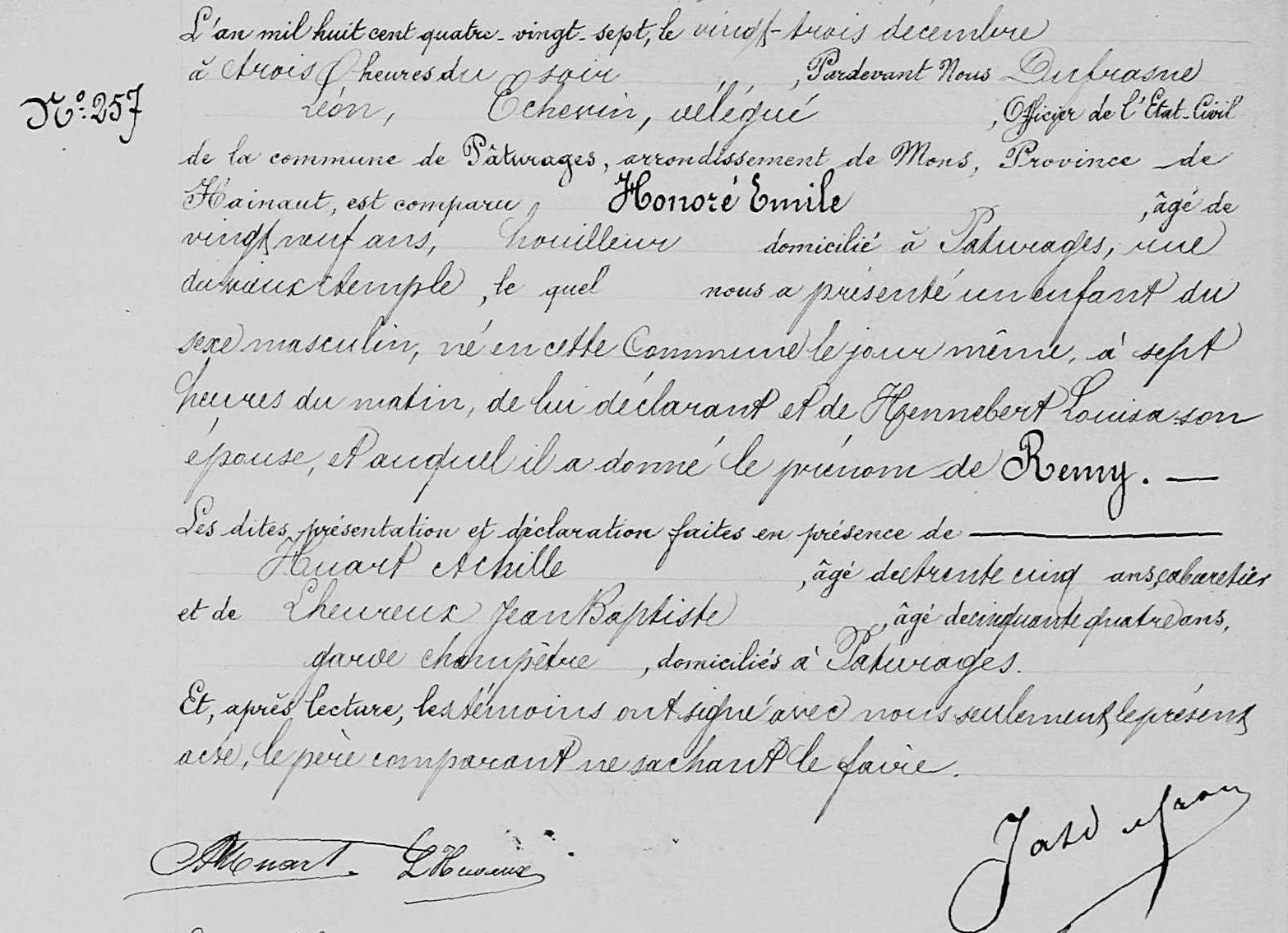 Paturages, HT, BE, registre des actes de naissance, année 1887