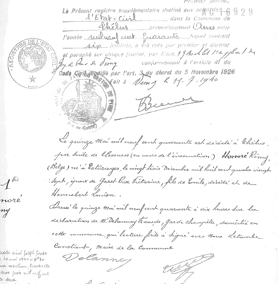Thélus, Pas-de-Calais, FR, registre des actes de décès, année 1940
