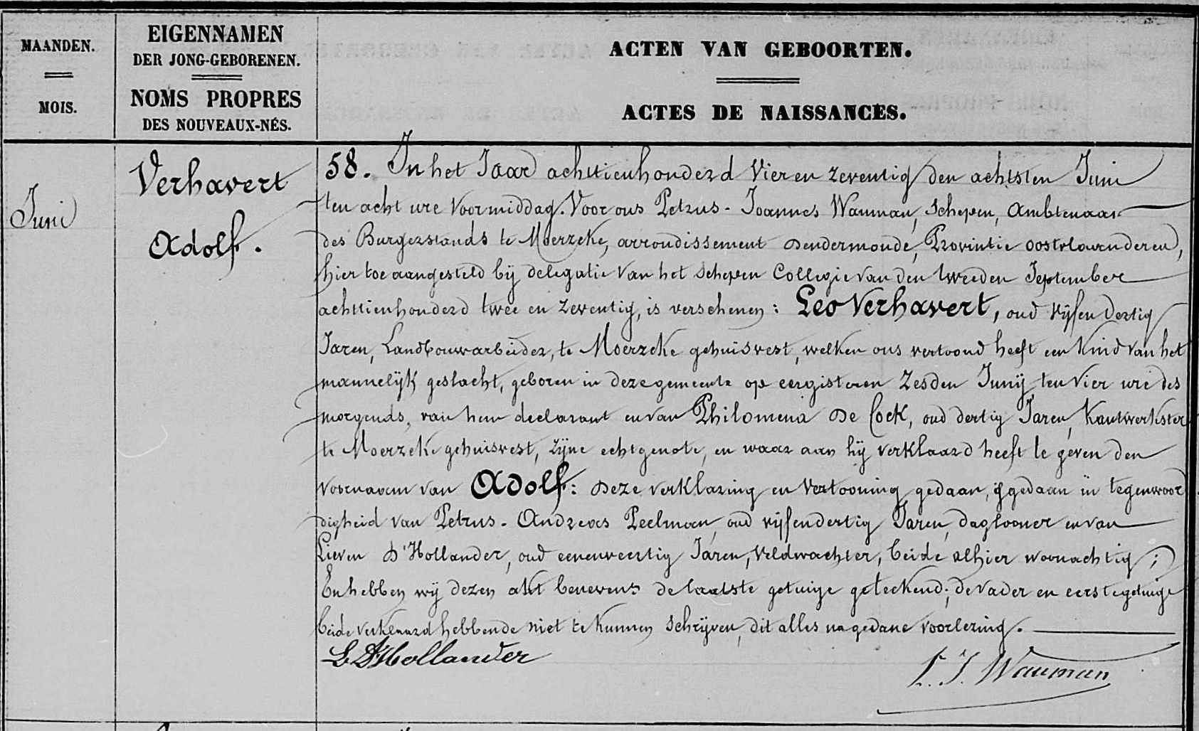 OV, BE: Geboorteakte nr 58 (1874) (Bron [358]