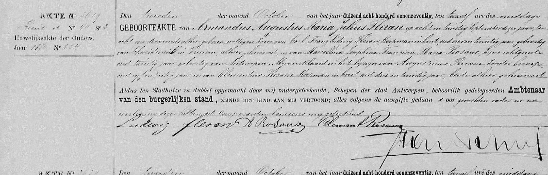 Geboorteakte te Antwerpen (Anvers), AN, BE (Bron [358])