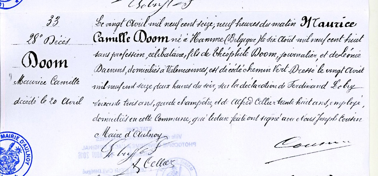 Aulnoy-lez-Valenciennes, Nord, FR, register van de overlijdensakten
