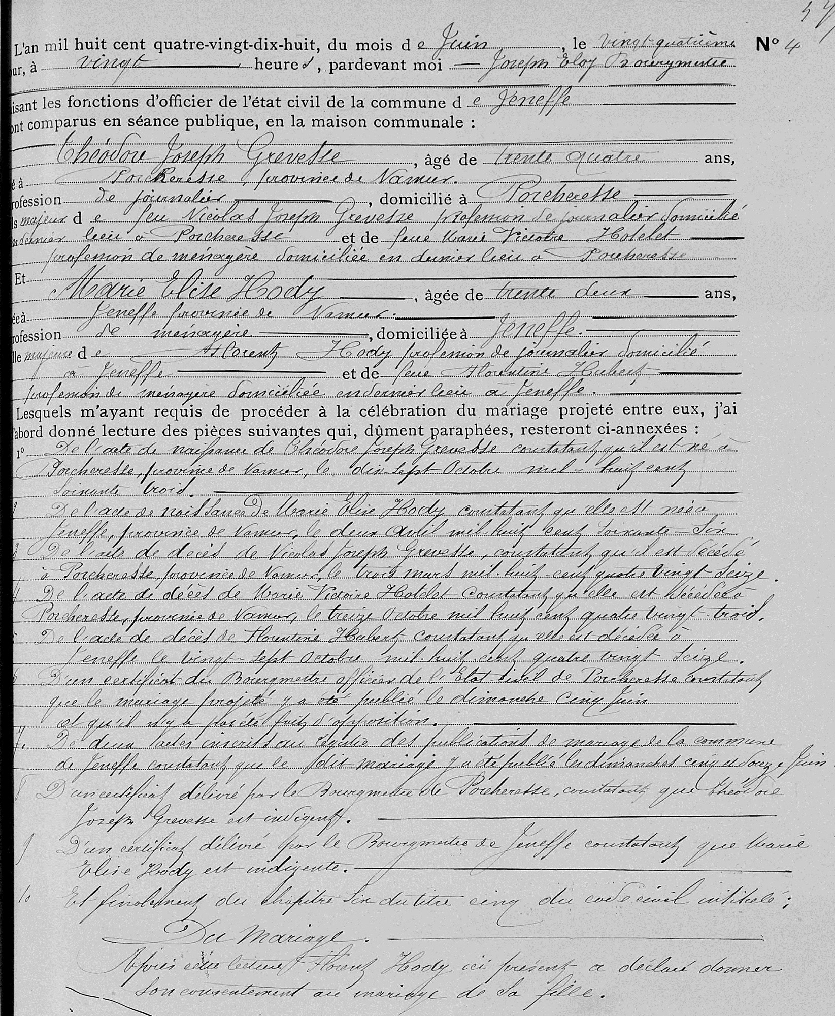 Légitimé lors du mariage de ses parents à Jeneffe en 1898, NA, BE