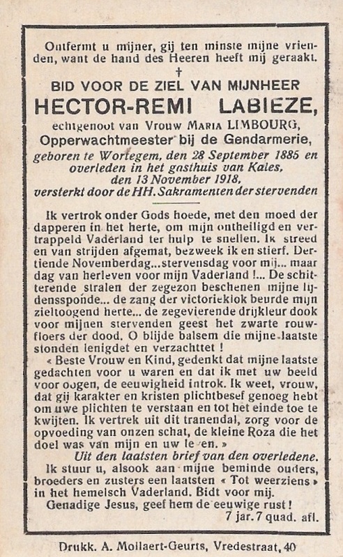 Rouwprent voor de gesneuvelden van Moregem