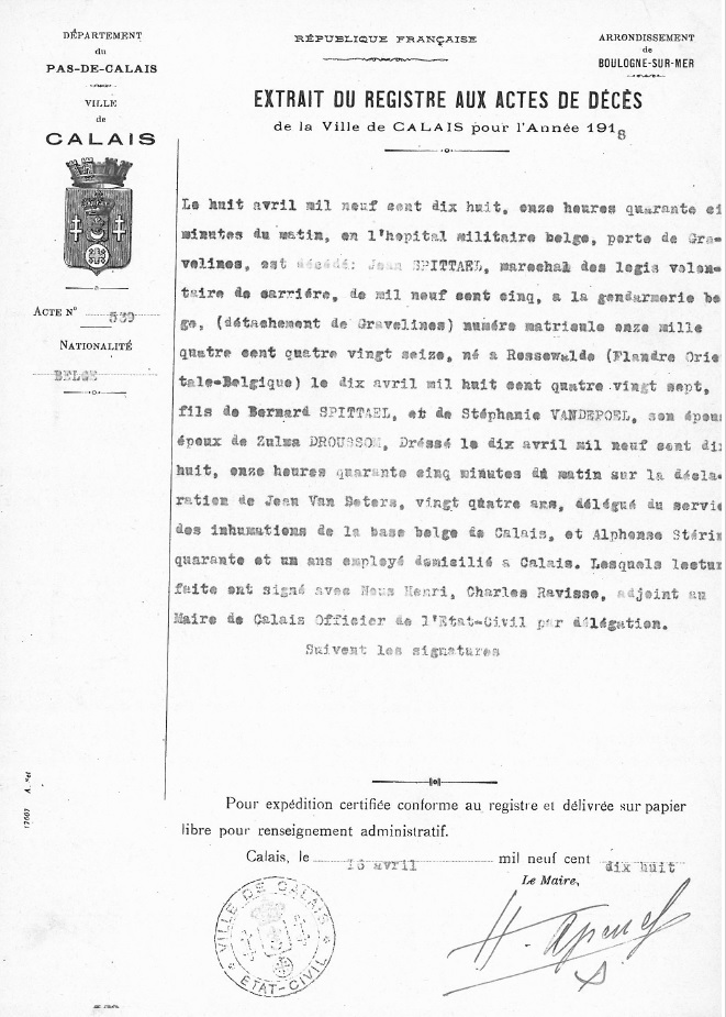 Overlijdensakte te Calais, Pas-de-Calais, FR (Bron [167])