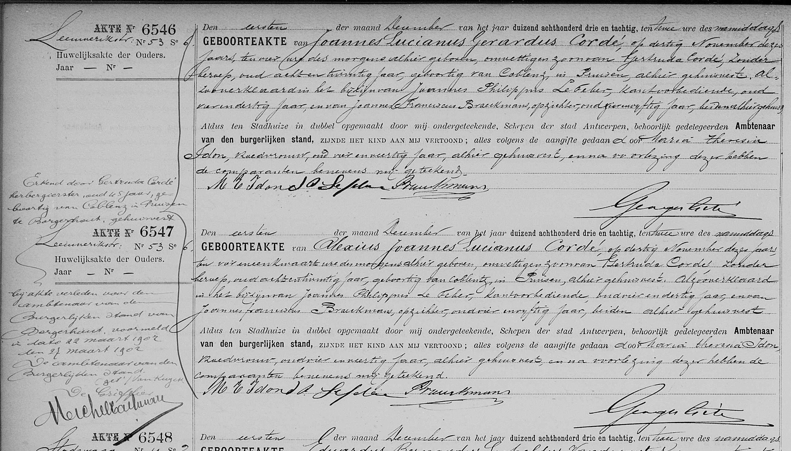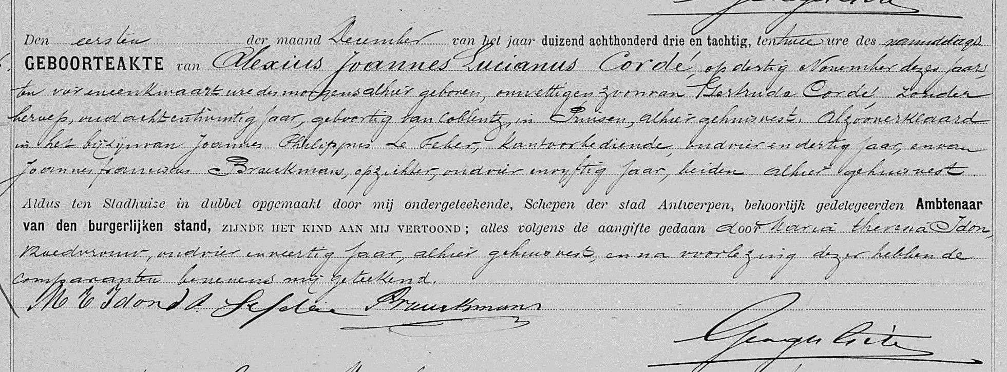 Geboorteakte te Antwerpen (Anvers), AN, BE (Bron [358])
