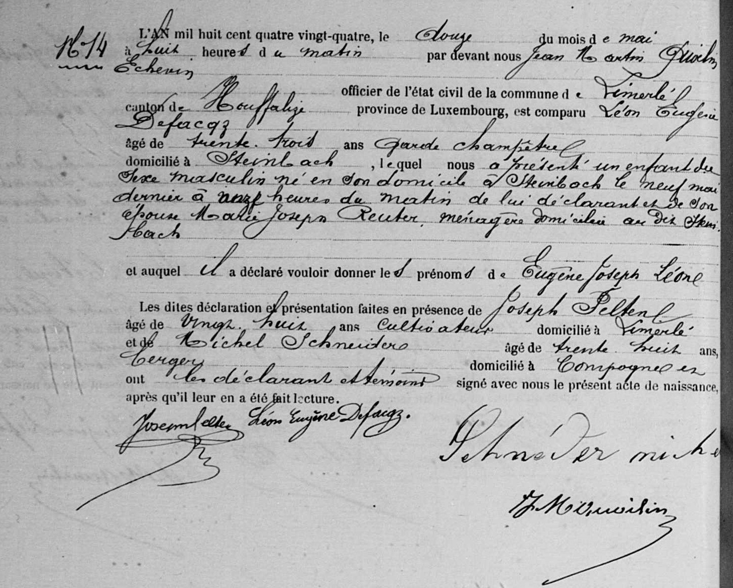 Acte de naissance à Steinbach (Limerlé), LU, BE (Source [358])