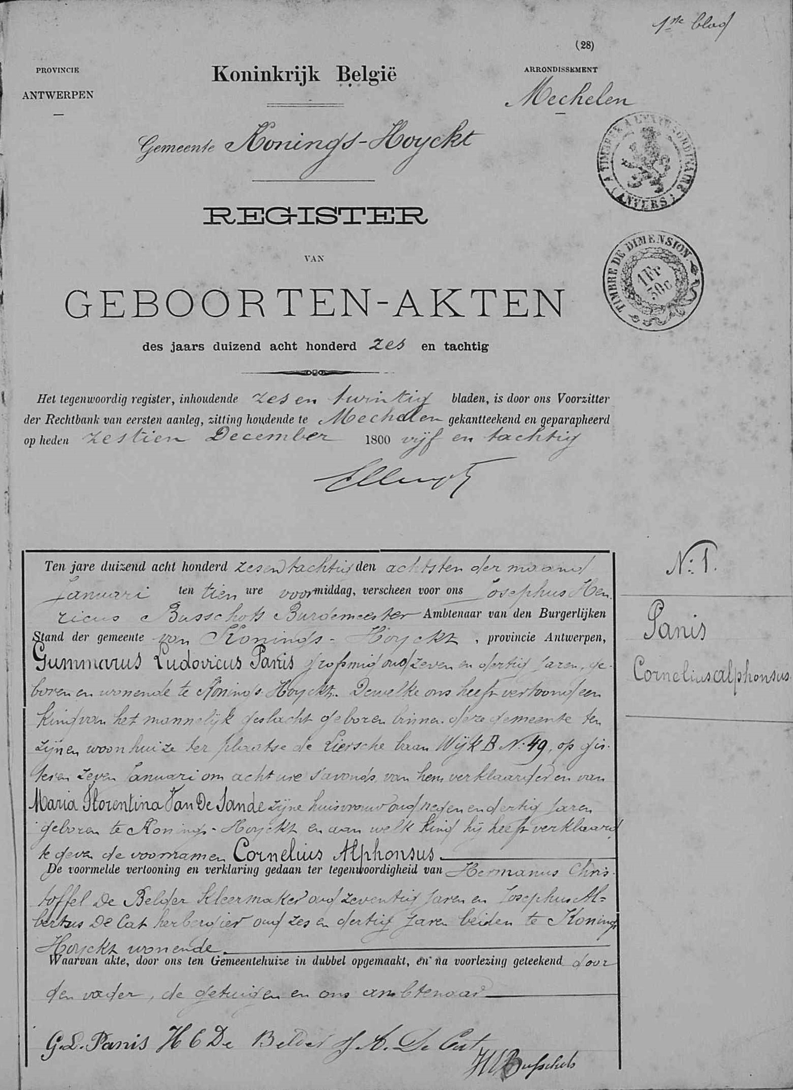 Geboorteakte te Koningshooikt, AN, BE (Bron [358]) (Het beeld