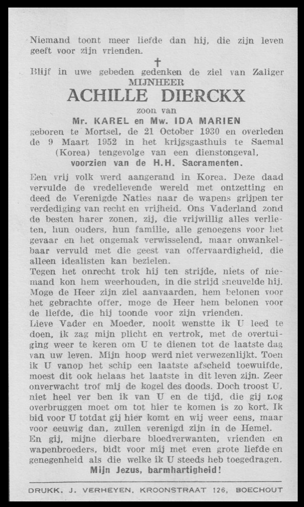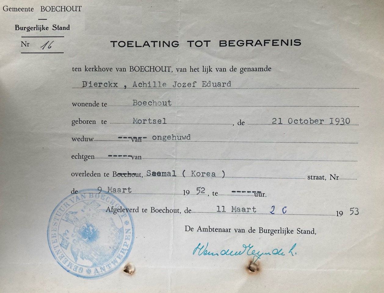 de la dépouille mortelle de 30 volontaires de Corée (28 Belges et 2