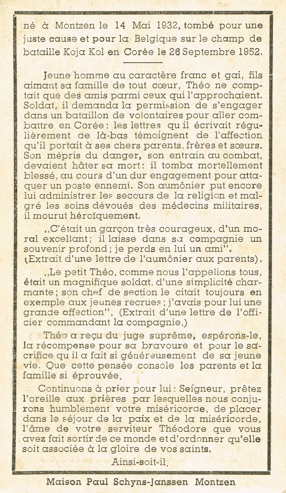 de la dépouille mortelle de 30 volontaires de Corée (28 Belges et 2