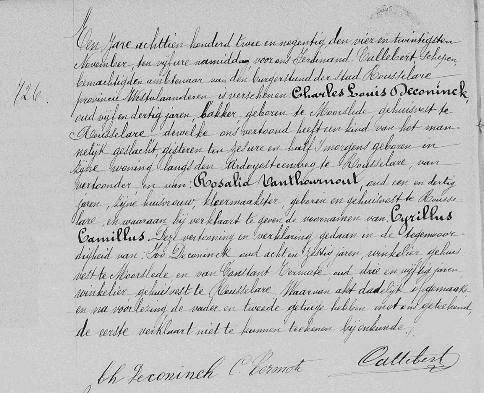 Geboorteakte te Roeselare, WV, BE (Bron [358])