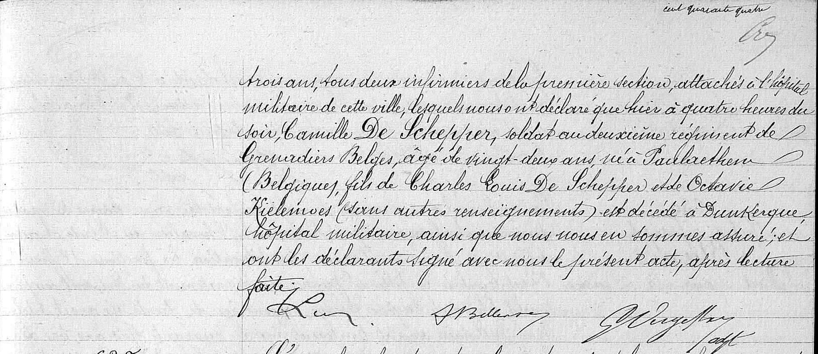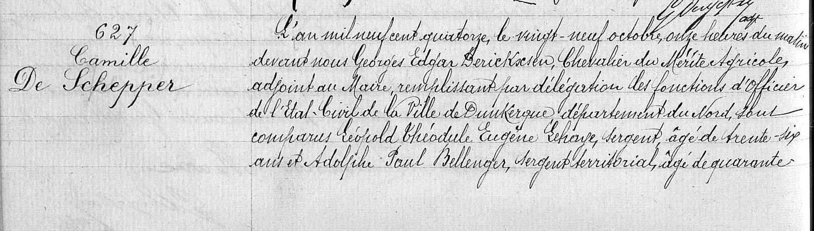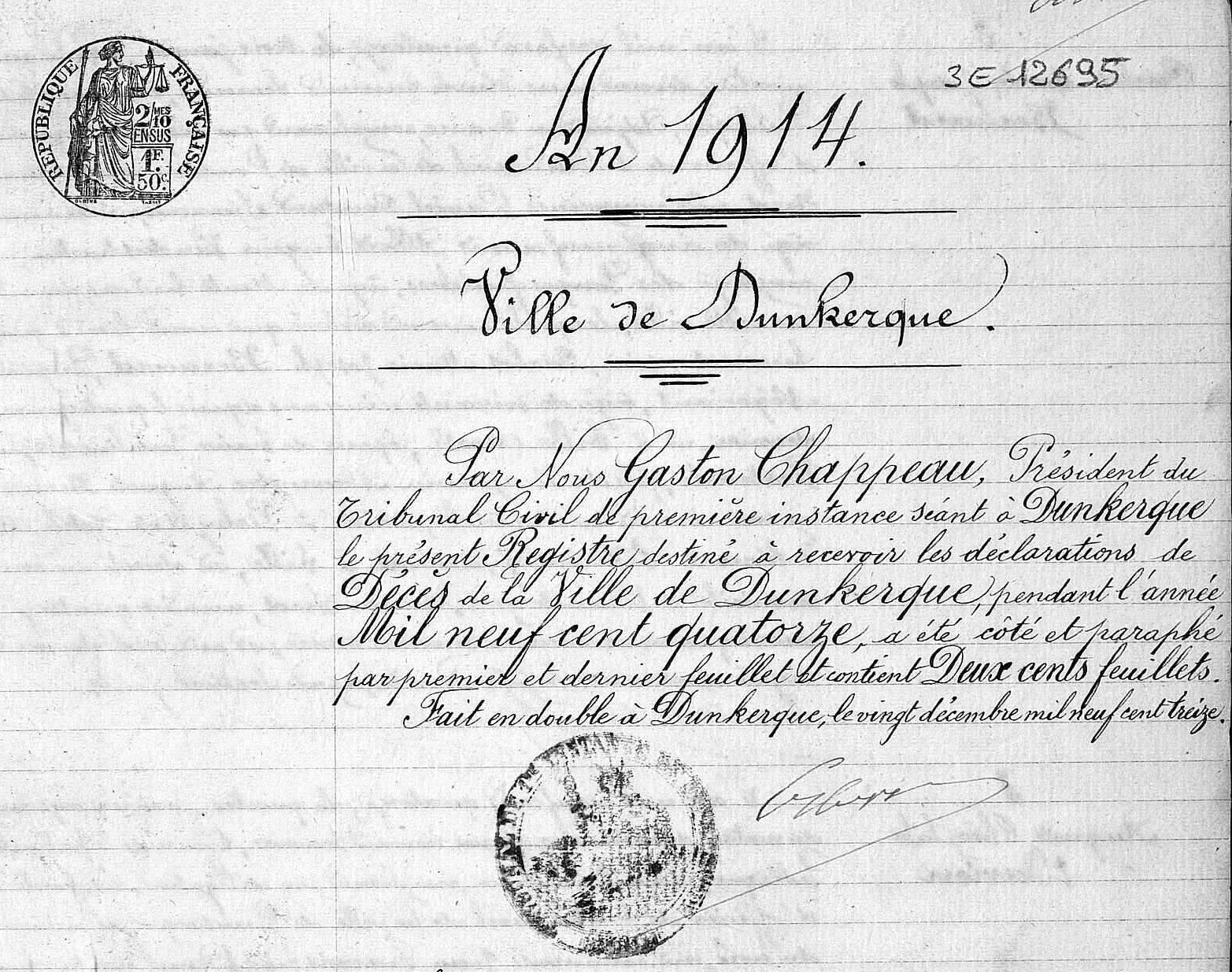 Overlijdensakte te Dunkerque, Nord, BE (Bron: Archives