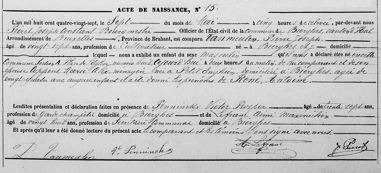 Acte de naissance à Bierghes (Bierk), BW, BE (Source [358])