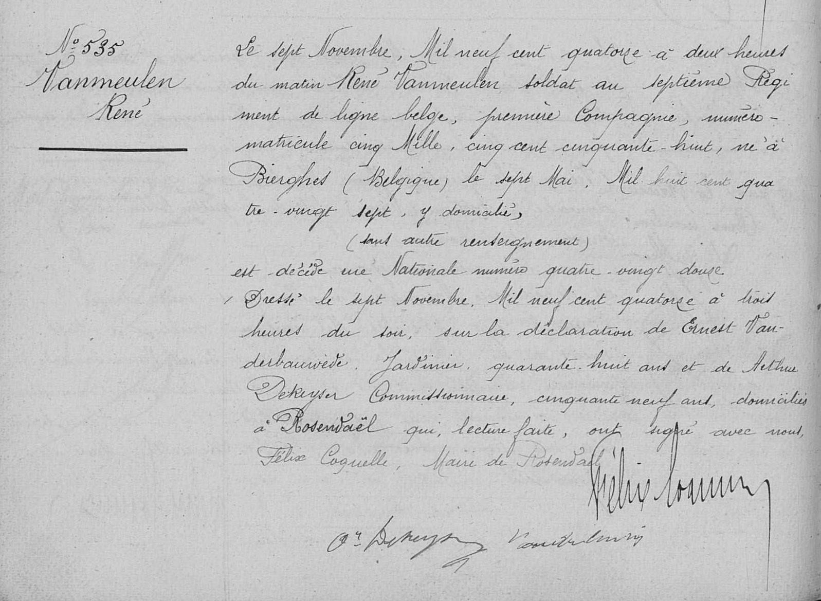 Acte de décès à Rosendaël, Nord, FR (Source: Archives