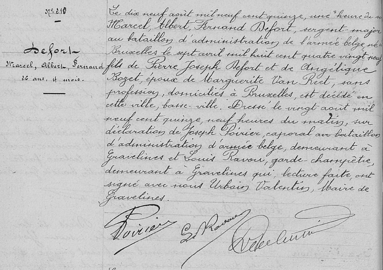 Acte de décès à Gravelines, Nord, FR (Source [368]) -