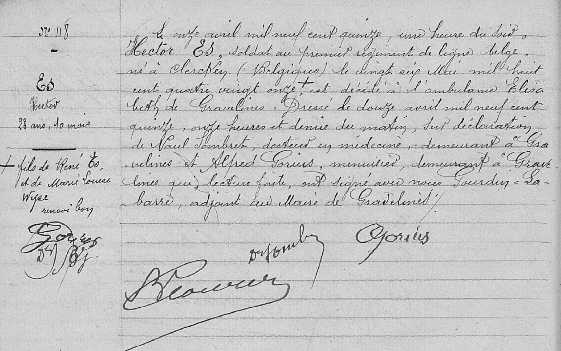 Overlijdensakte te Gravelines, Nord, FR (Bron [368])