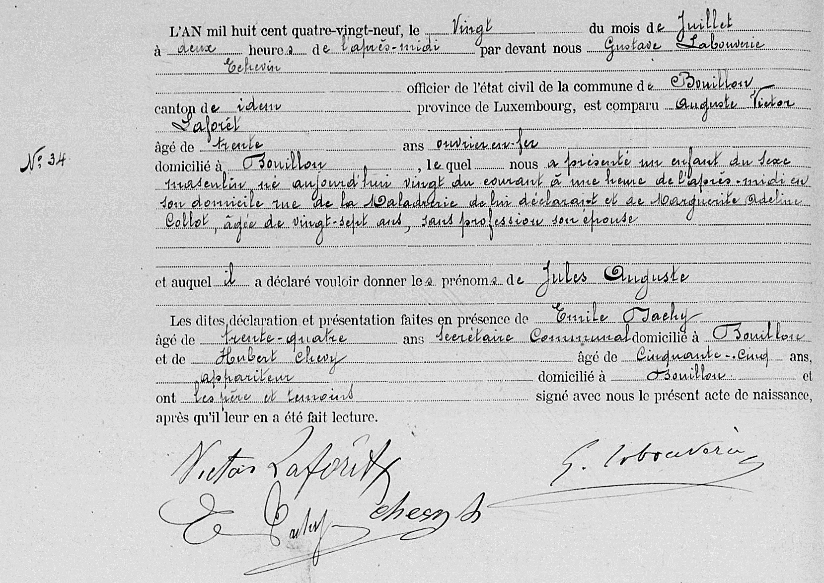 Acte de naissance à Bouillon, LU, BE (Source [358])