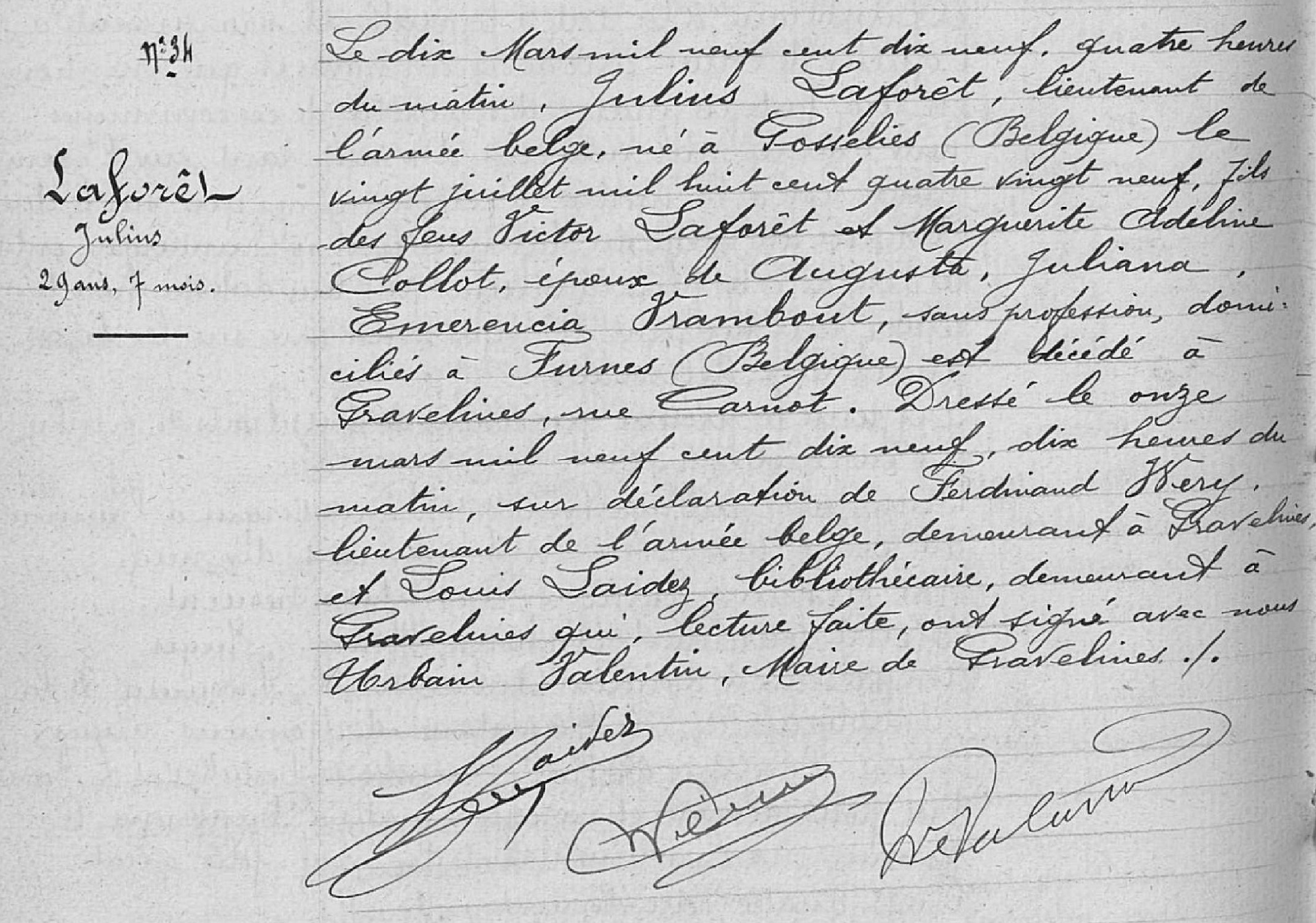 Acte de décès à Gravelines, Nord, FR (Source [368])