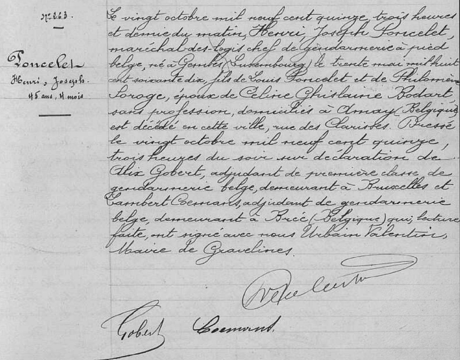 Acte de décès à Gravelines, Nord, FR (Source [368]) -