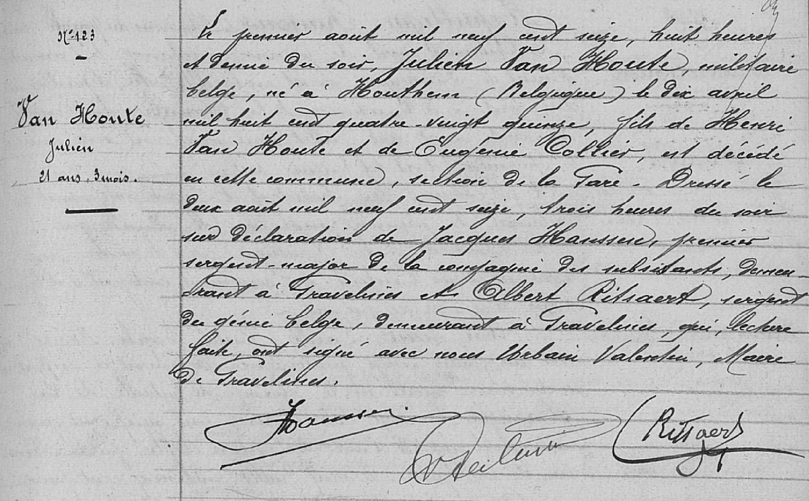 Overlijdensakte te Gravelines, Nord, FR (Bron [368])
