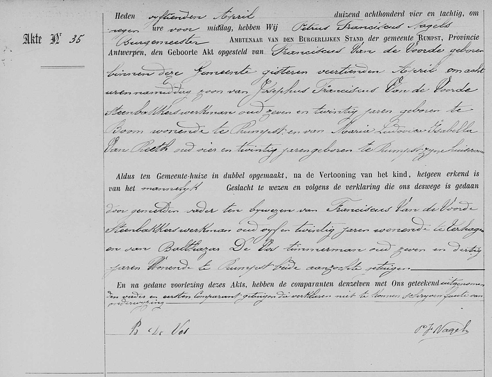 Geboorteakte te Rumst, AN, BE (Bron [358]) (Het beeld downloaden