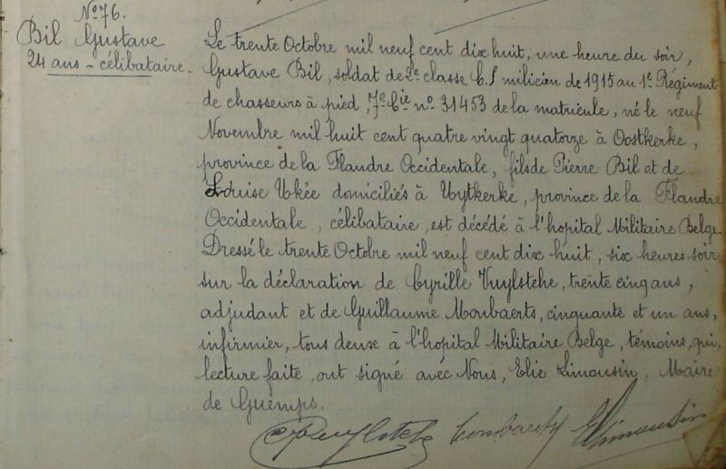 Guemps, Pas-de-Calais, FR, overlijdensacte