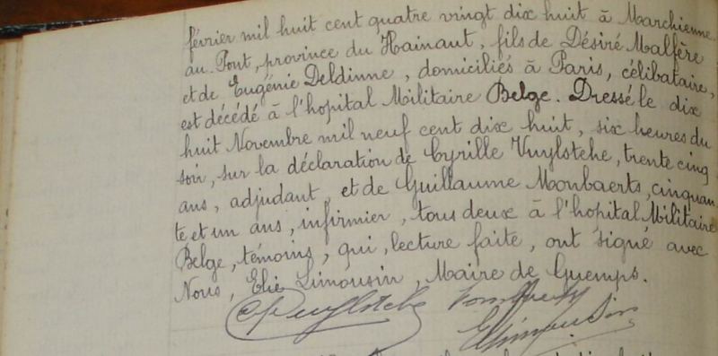 Guemps, Pas-de-Calais, FR, overlijdensacte