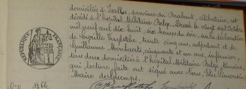 Guemps, Pas-de-Calais, FR, overlijdensacte