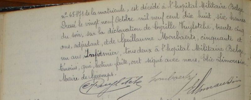 Guemps, Pas-de-Calais, FR, overlijdensacte