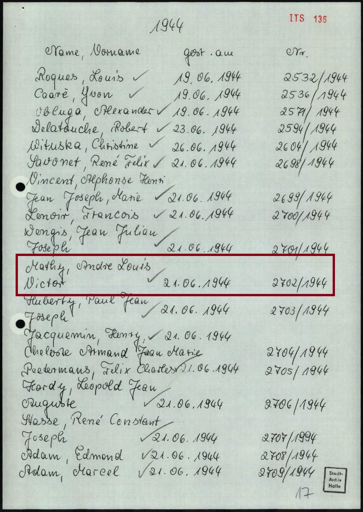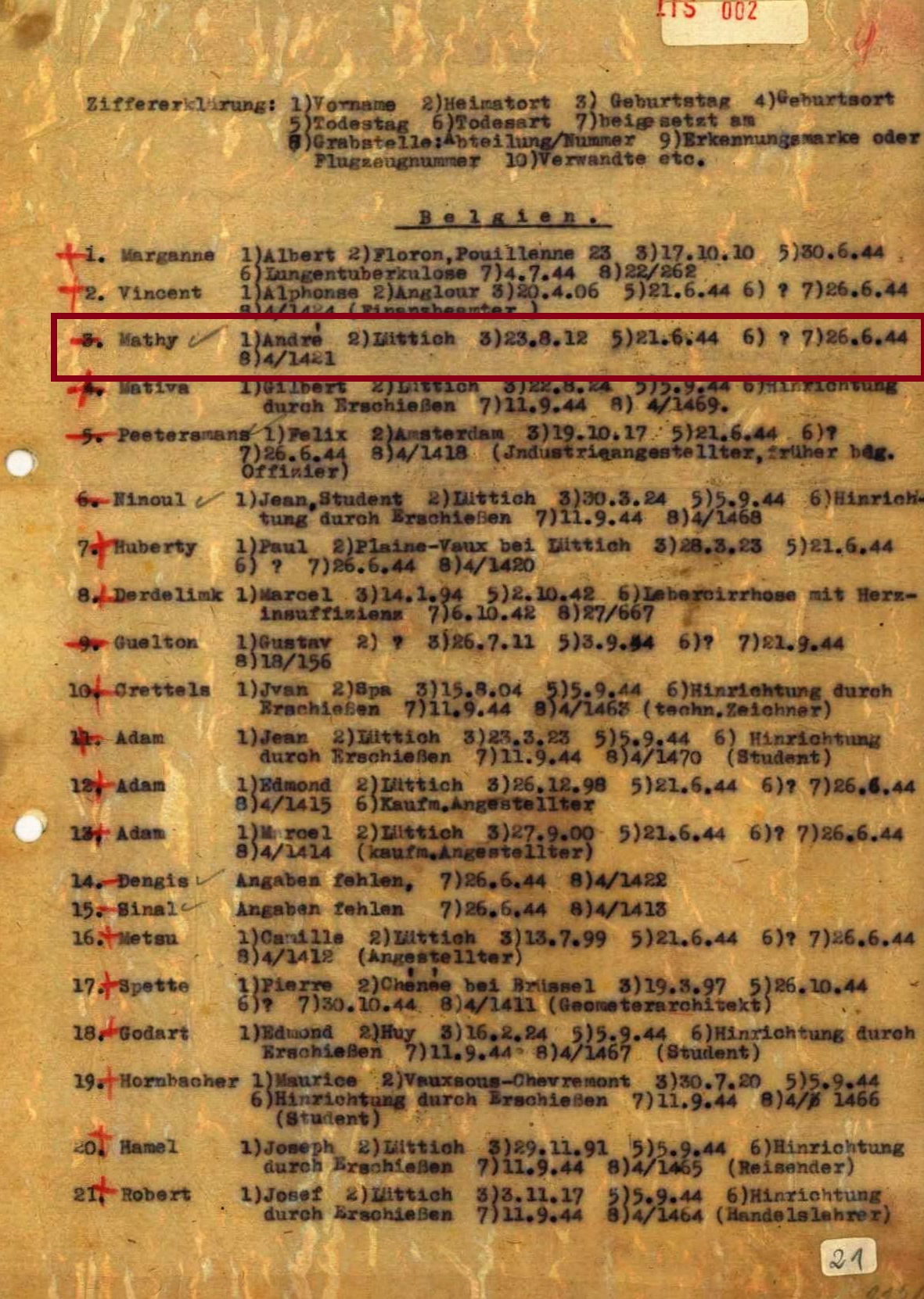 de première inhumation de André MATHY