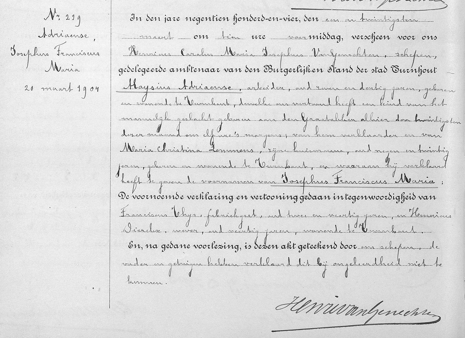 Geboorteakte te Turnhout, AN, BE (Bron [358])