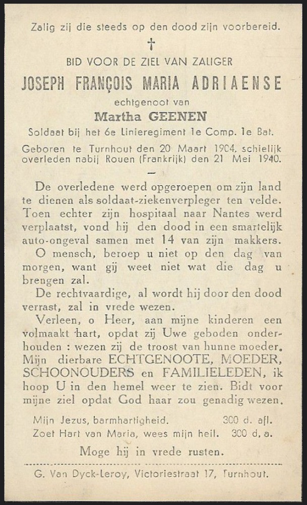 Begrafenis van Joseph ADRIAENSE en Adrianus DECKX in