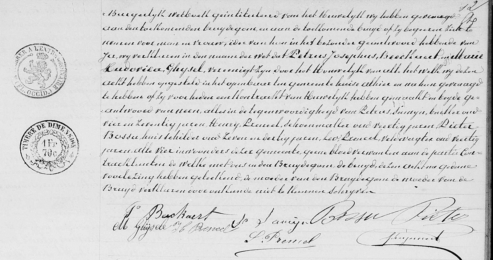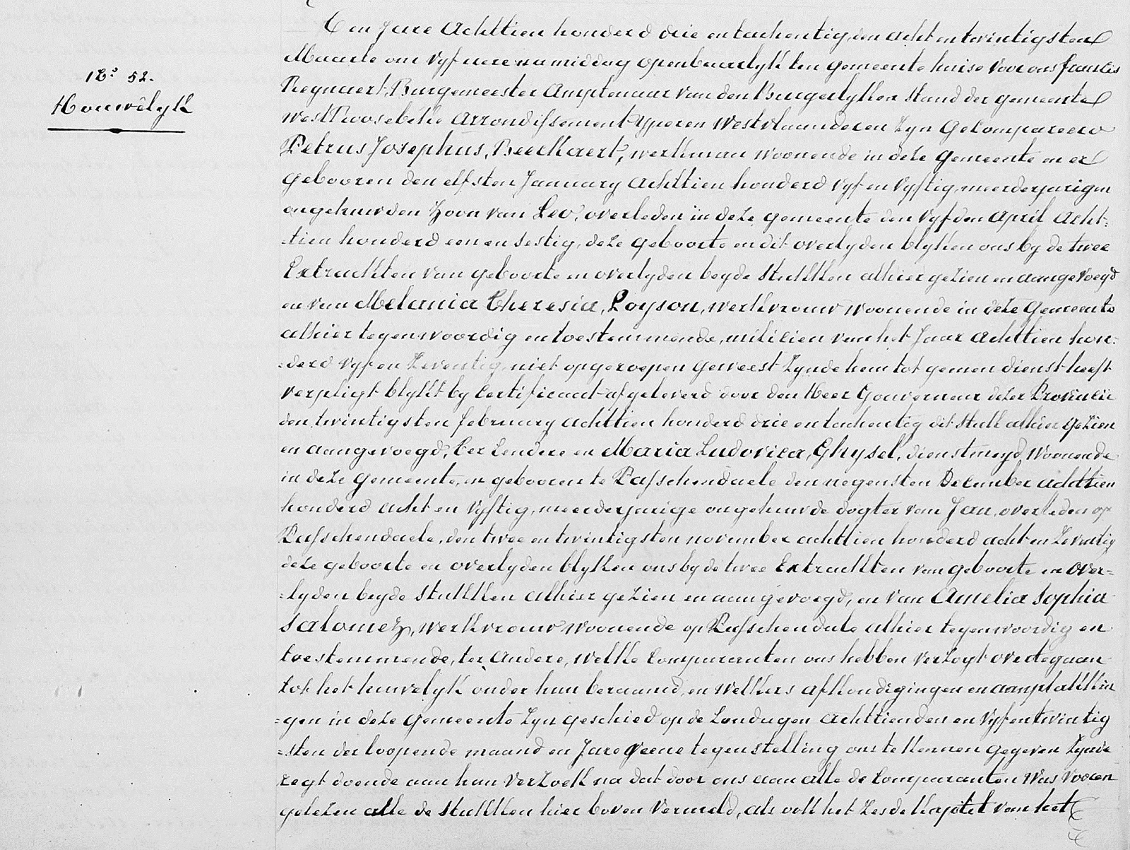 Huwelijksakte nr 52 (1883) van Westrozebeke, WV, BE (huwelijk van
