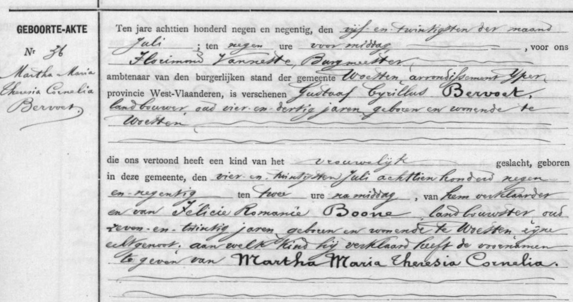 Woesten, WV, BE: Geboorteakte nr 36 (1899) (Bron [229])