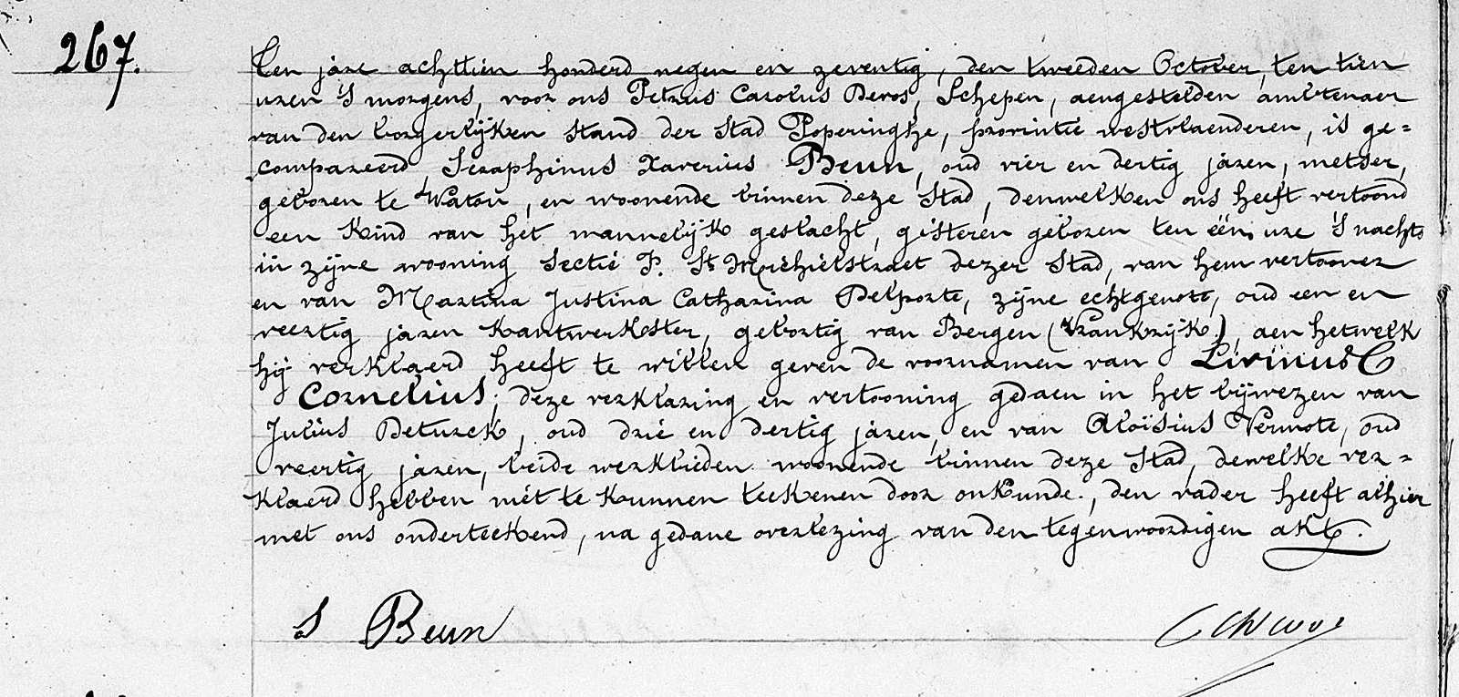 Poperinge, WV, BE: Geboorteakte nr 267 (1879) (Bron [358])