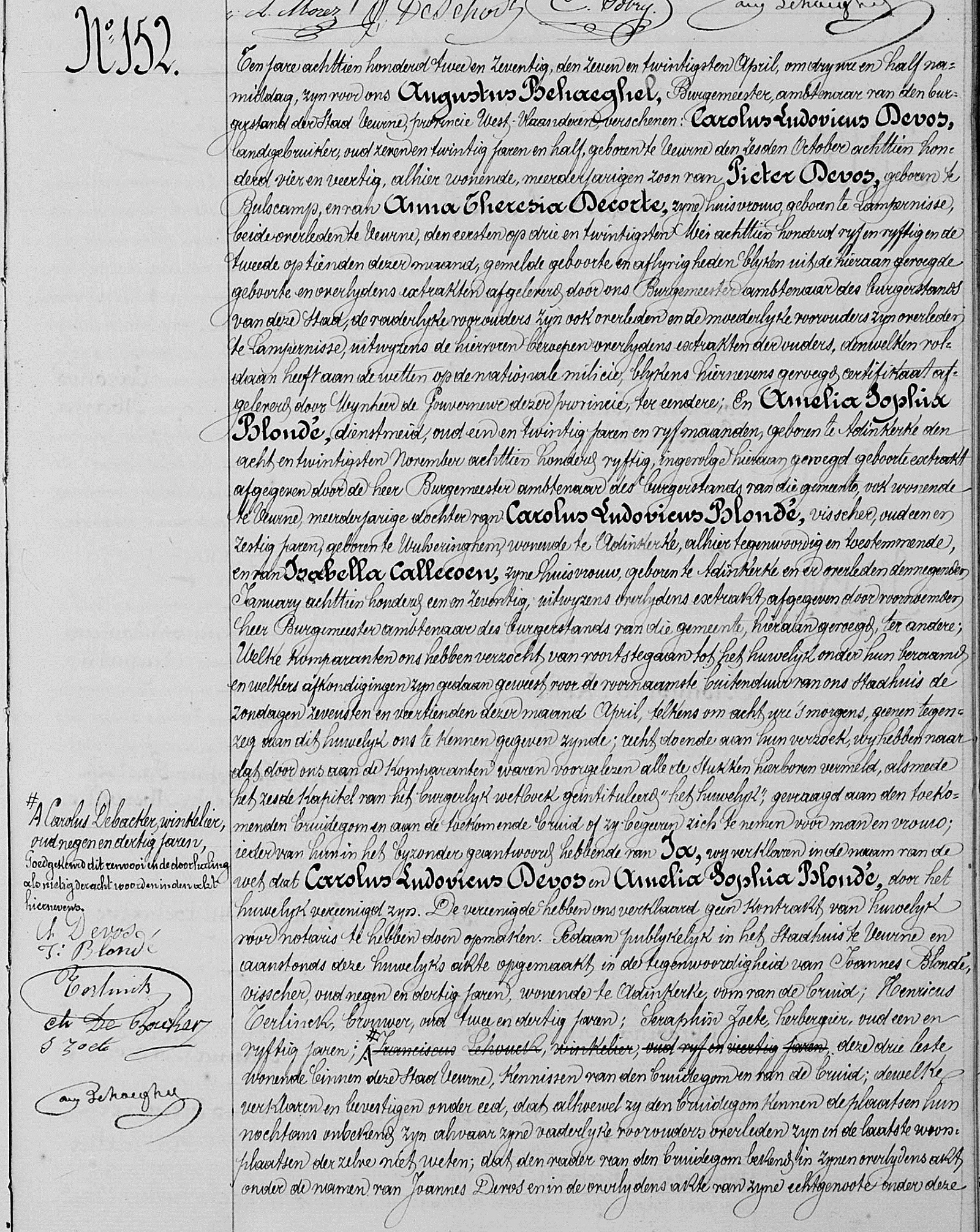Veurne, WV, BE: Huwelijksakte nr 152 (1872) (Bron [358])