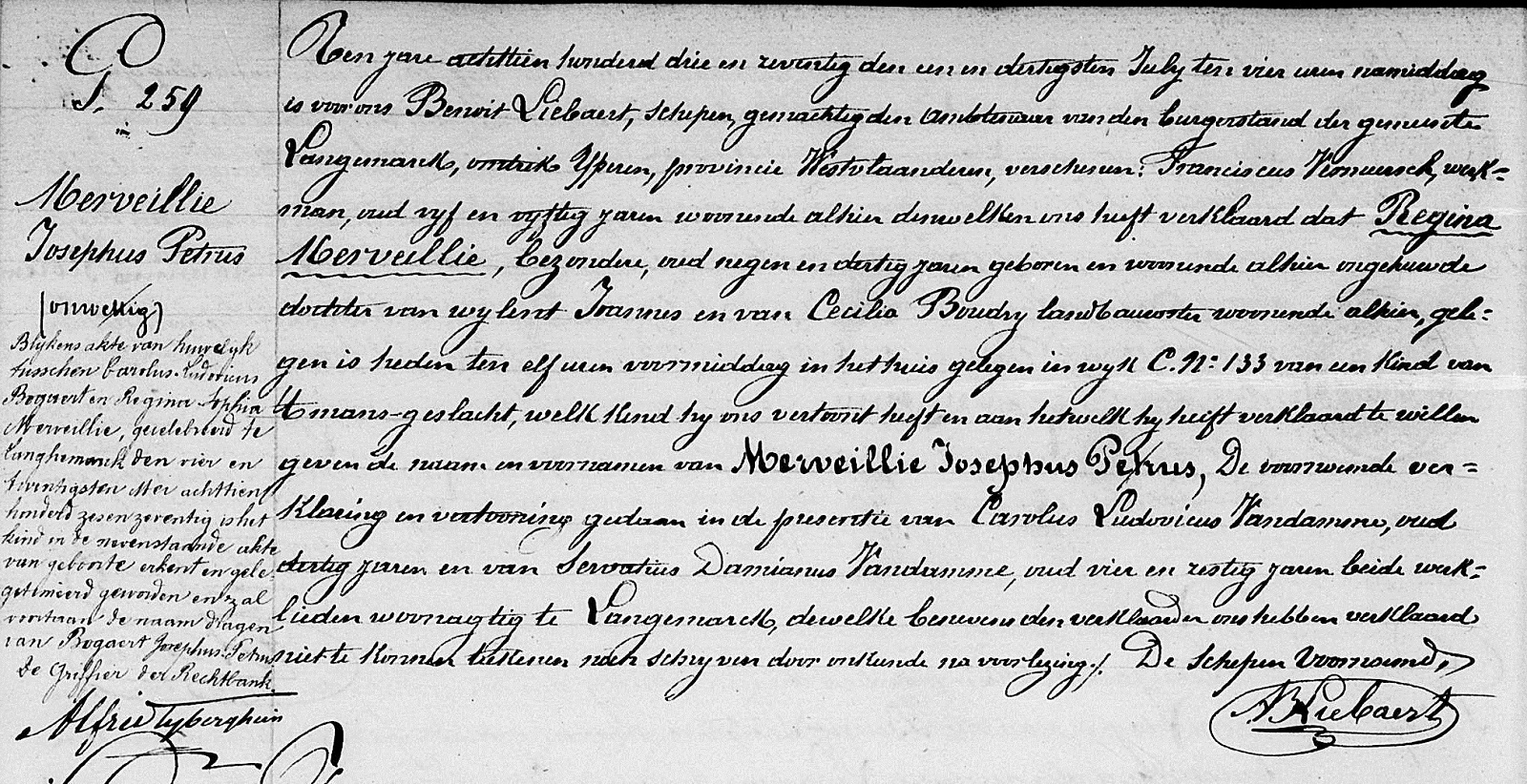 Langemark, WV, BE: Geboorteakte nr 259 (1873) (Bron [358])