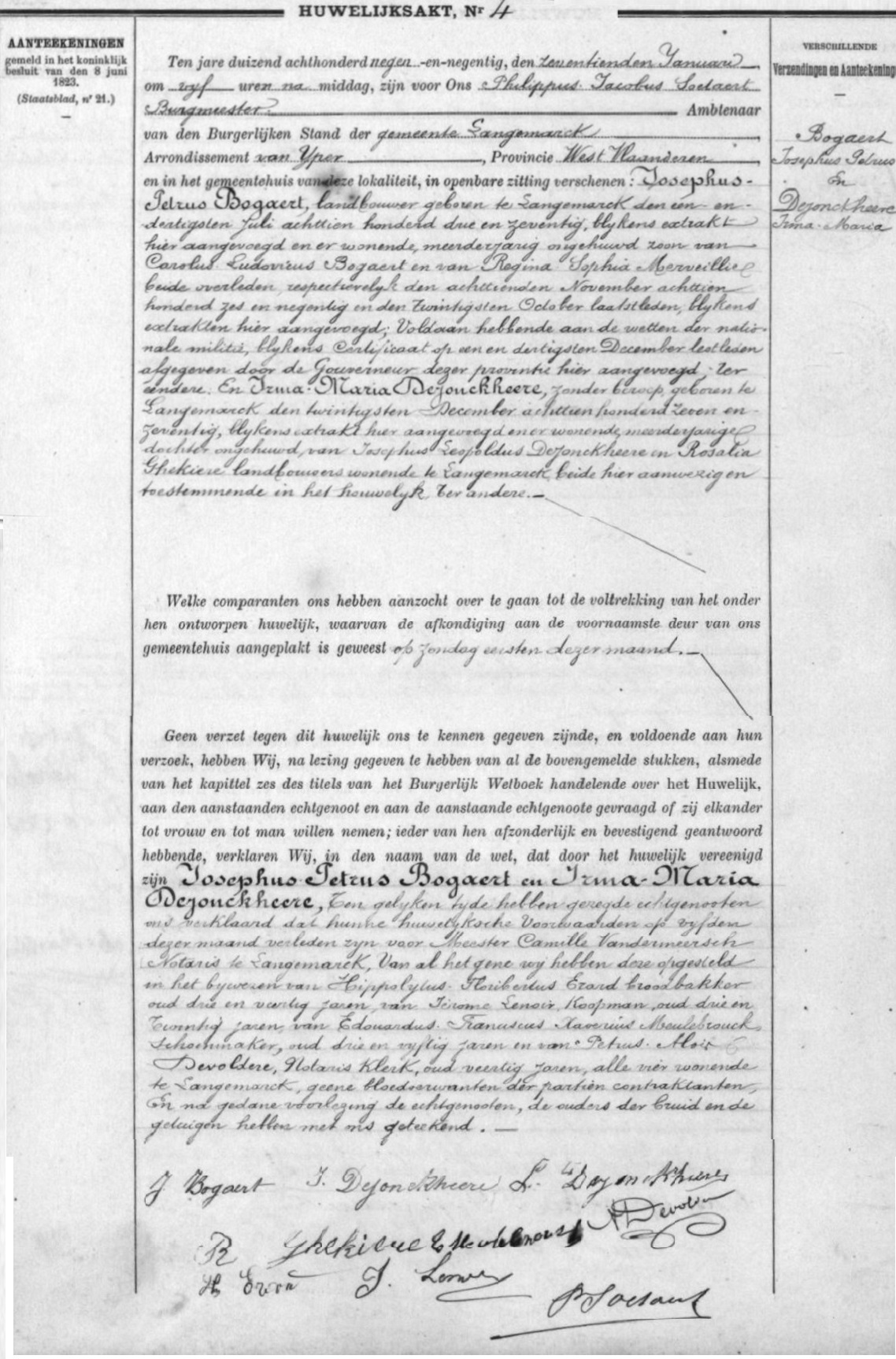 Langemark, WV, BE: Huwelijksakte nr 4 (1899) (Bron [229])