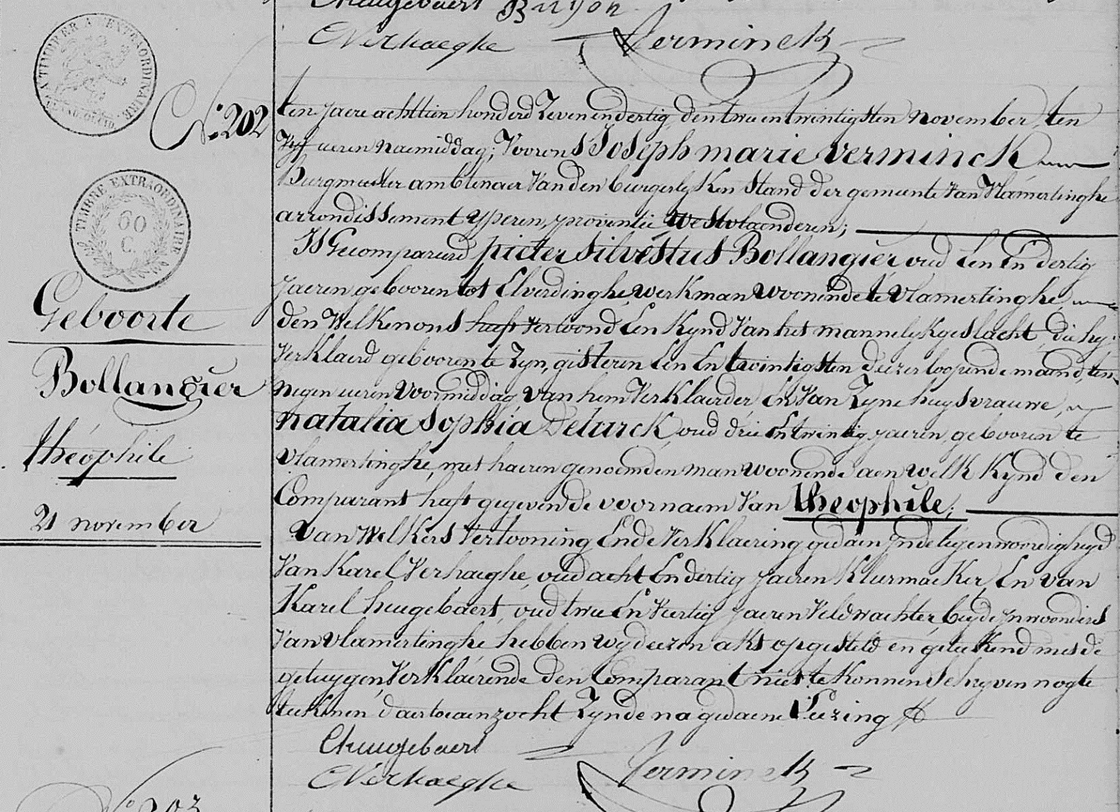 Vlamertinge, WV, BE: Geboorteakte nr 202 (1837) (Bron [358])