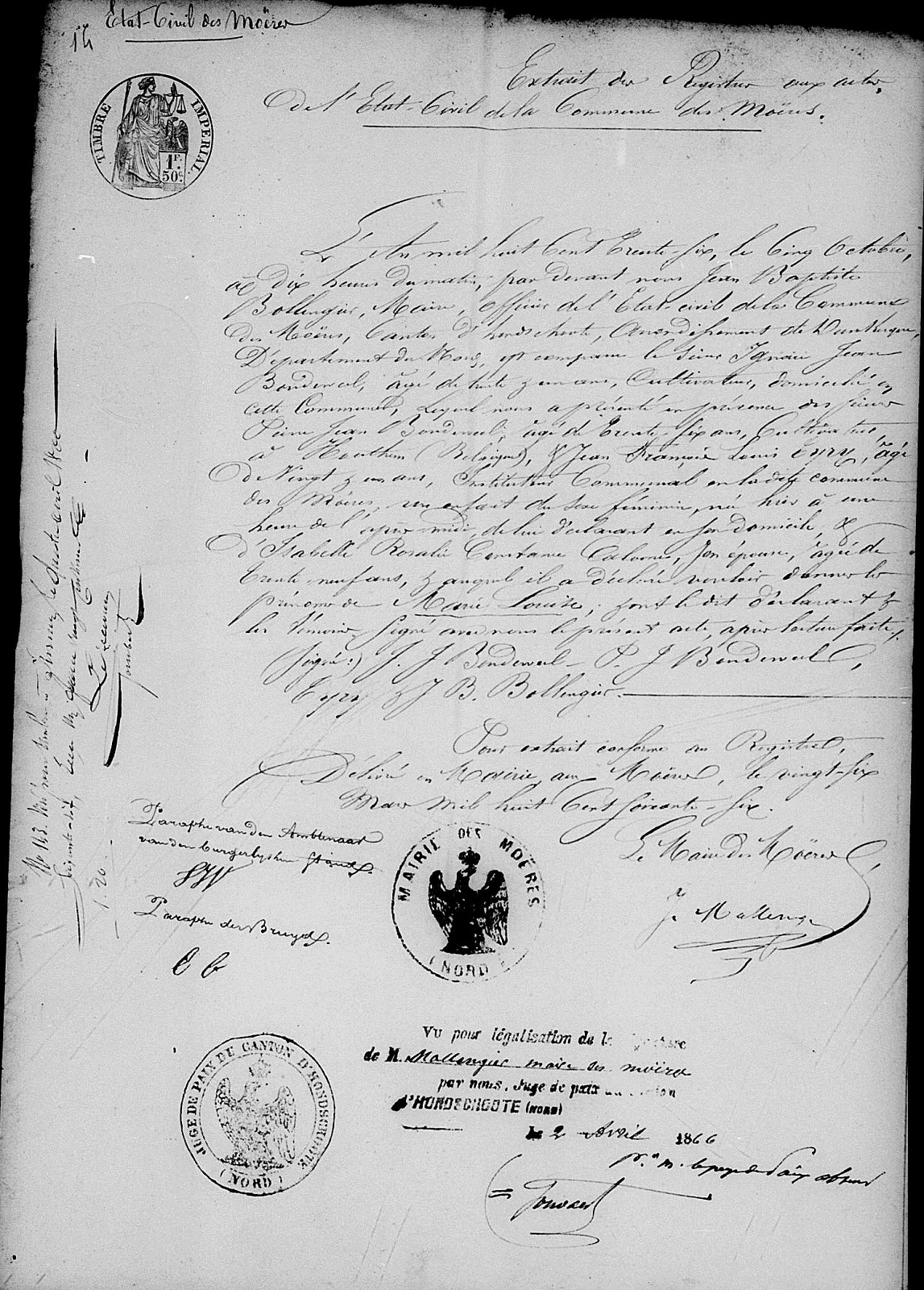 Les Moëres, Nord, FR: Geboorteakte (1836) (Bron [358])