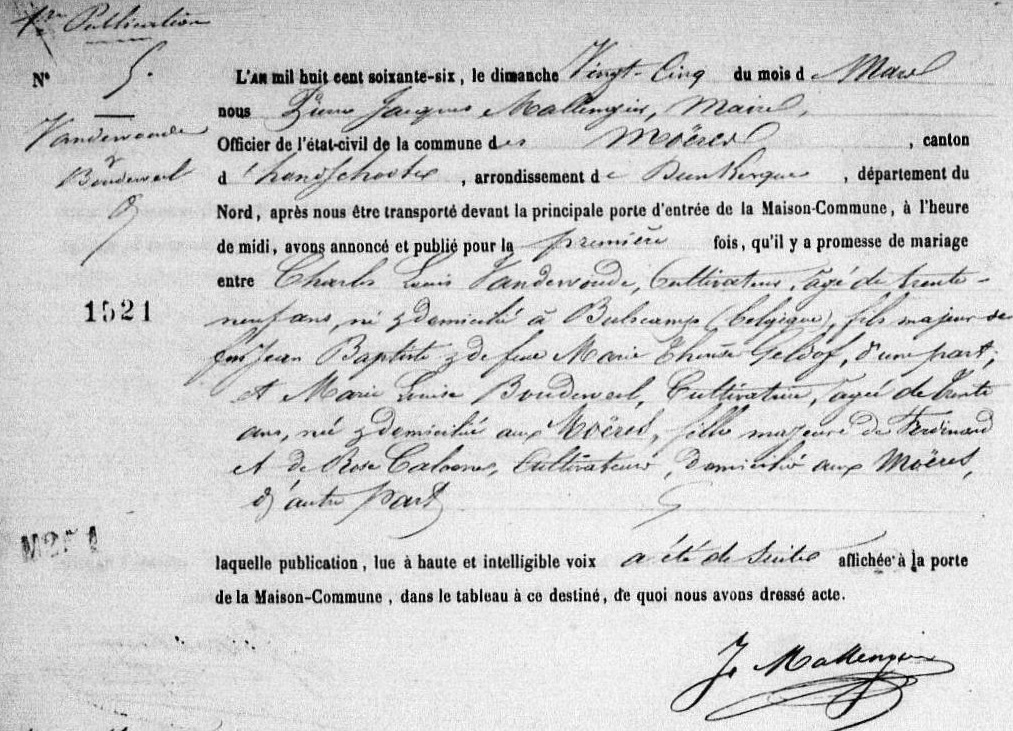 Bulskamp, WV, BE: Huwelijksaankondiging 1866